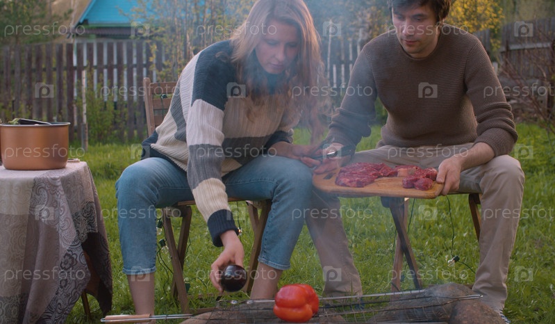 Пара приготовления пищи на гриле для барбекю на открытом воздухе