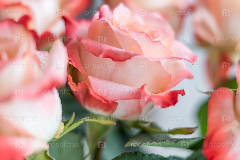 Крупный план розовых роз с каплями воды. Цветочный фон