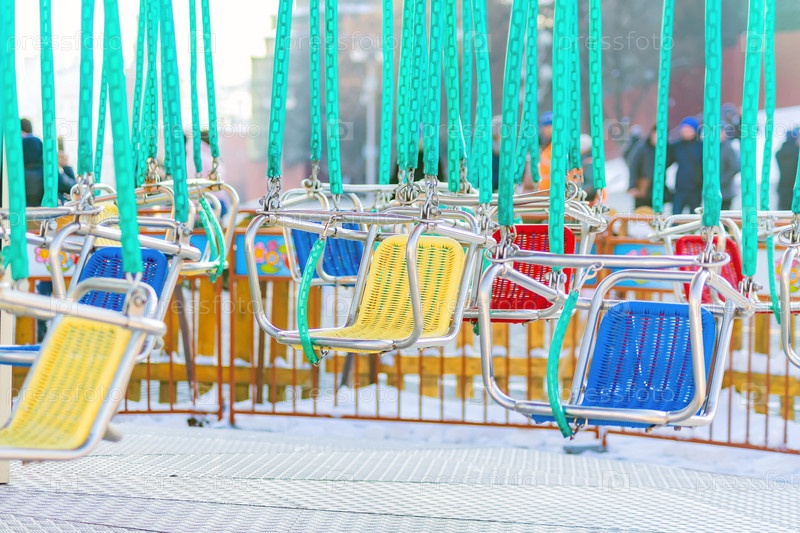 Пустые места детской карусели в пасмурный день