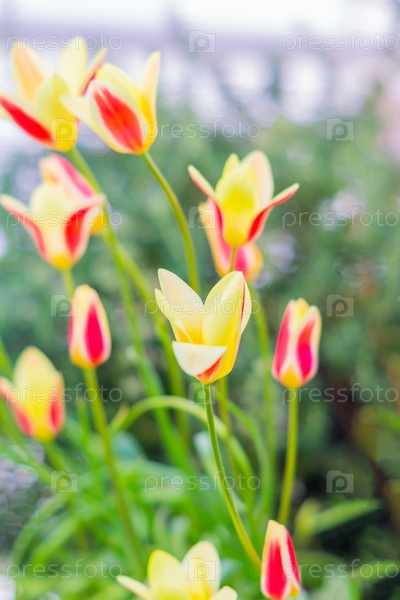 Цветущий желтый и красный тюльпан, цветочный фон