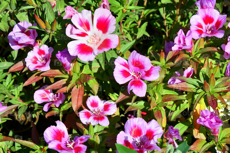 Цветы годеции в летнем саду