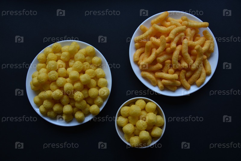 Кукурузные чипсы с солью и перцем на белой тарелке. Вкусный завтрак из кукурузных чипсов на черном фоне
