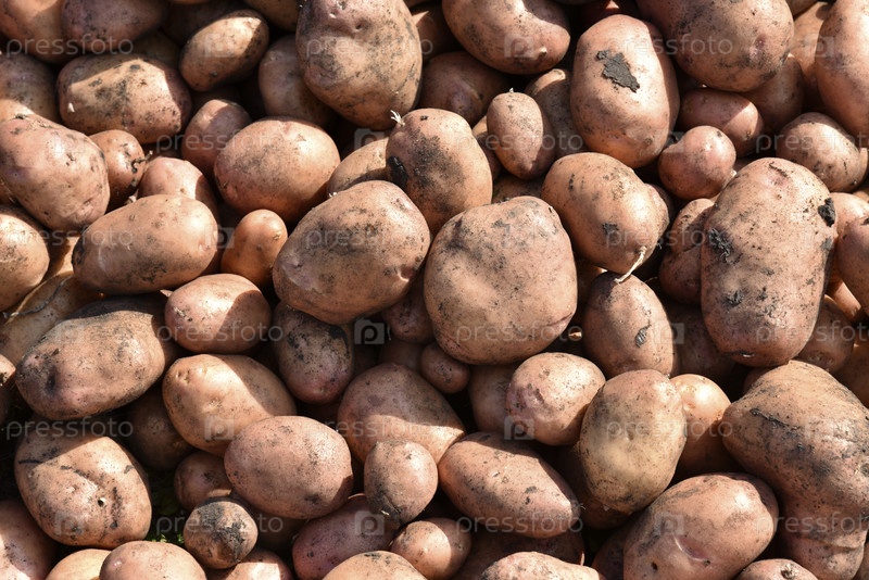 Куча крупного картофеля осенью. Уборка картофеля крупным планом. Крупные плоды картофеля