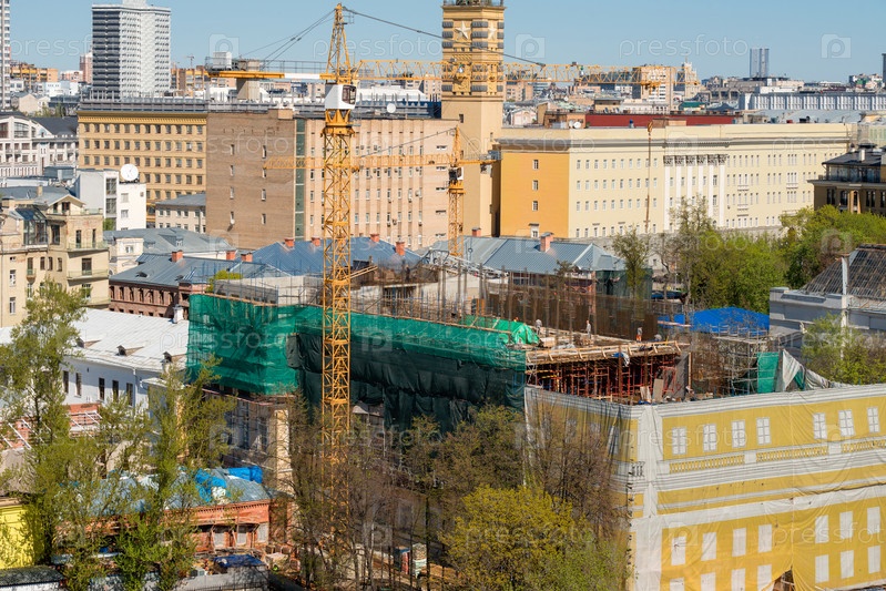 Вид сверху на реконструкцию усадьбы князей Голицыных на улице Волхонка в Москве