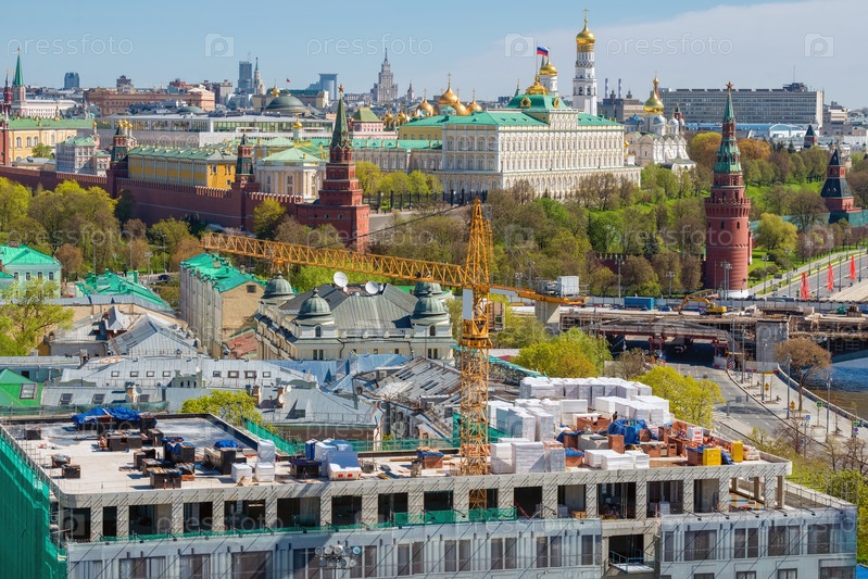Вид сверху на реконструкцию старого здания возле Московского Кремля Москва