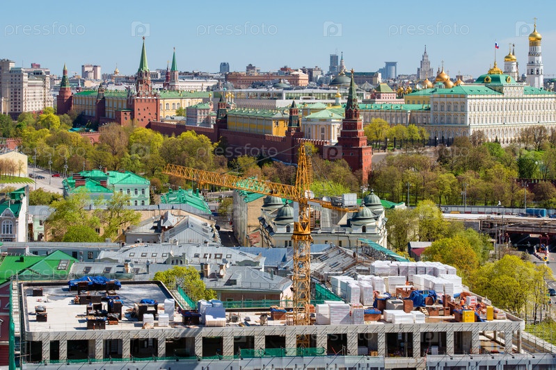 Вид сверху на реконструкцию старого здания возле Московского Кремля Москва