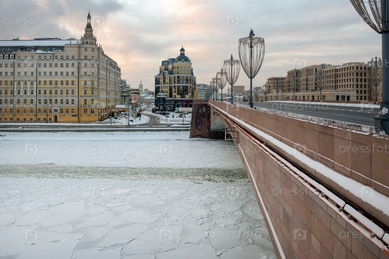 Вид на Большой Москворецкий мост в Москве морозным зимним утром