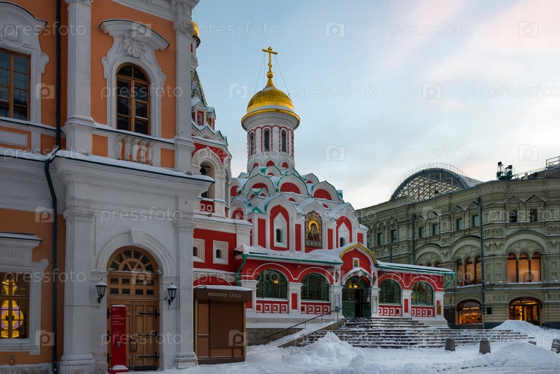 Собор Казанской иконы Божией Матери на Красной площади в Москве ранним зимним утром