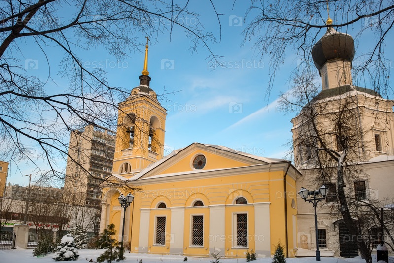 Москва, Россия - 17 января 2021 года: Вид на церковь Успения Пресвятой Богородицы в Казачьей Слободе на улице Большая Полянка морозным зимним утром