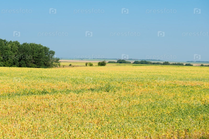Сельскохозяйственные поля с урожаем до горизонта, осенний день в поле