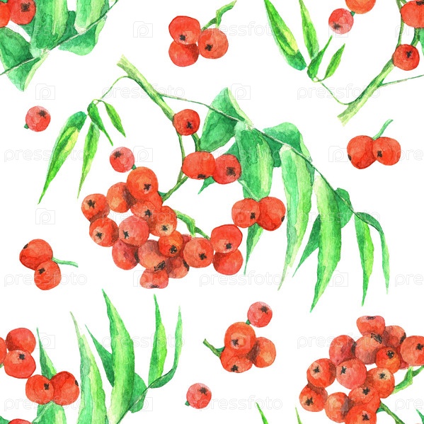 Ветка рябины, узор, акварель