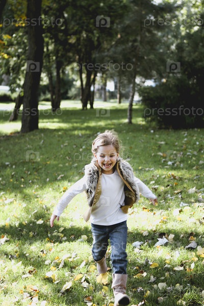 Счастливая маленькая девочка в осеннем парке