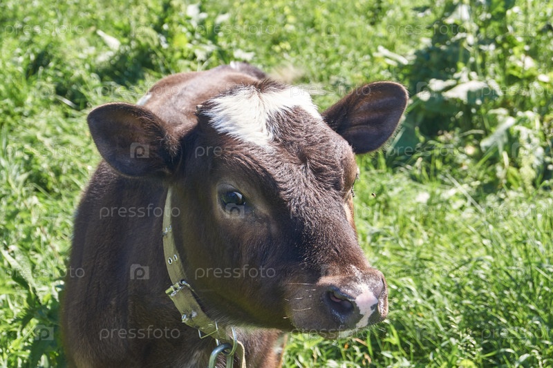 Бычок пасется на лугу