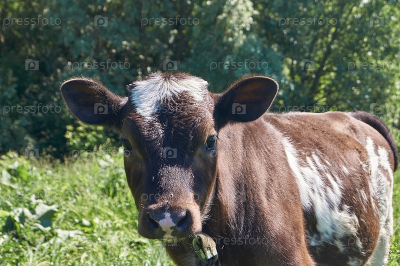 Бычок пасется на лугу