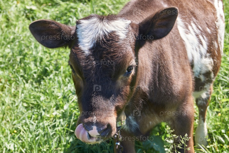 Бычок пасется на лугу