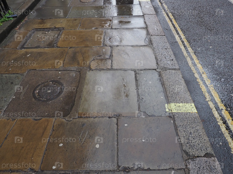 Мокрый тротуар полезен в качестве фона с копировальным пространством