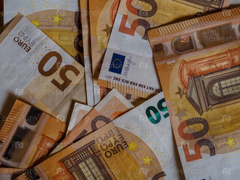 Банкноты евро деньги (EUR), валюта Европейского Союза