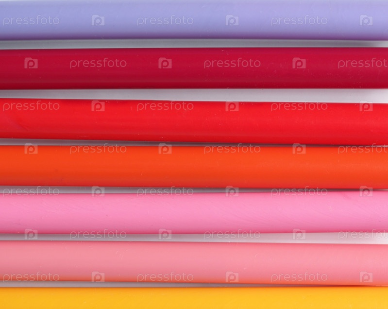 Много фиолетовых красных розовых и желтых фломастеров на столе