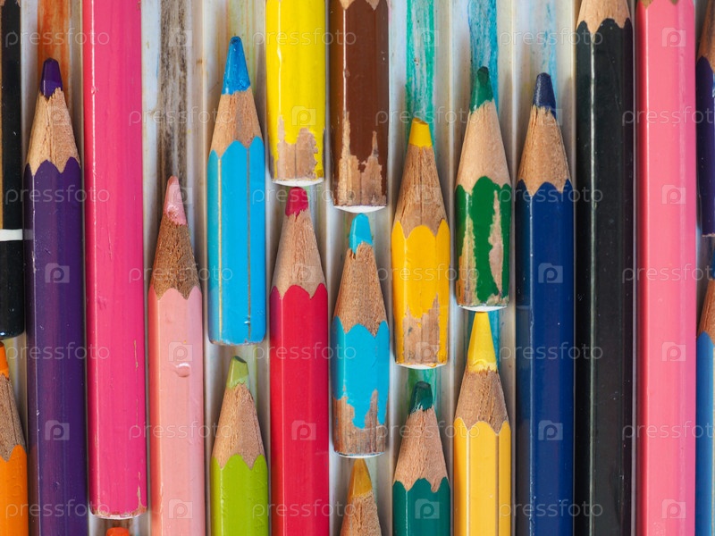 Цветные карандаши разных цветов и длины