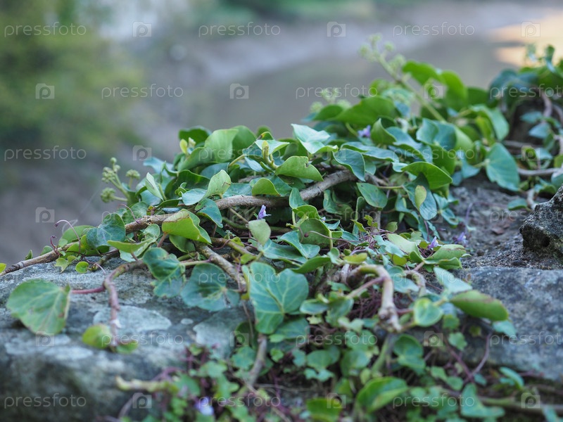 Плища (Hedera) растение, растущее на каменной стене, полезное в качестве фона