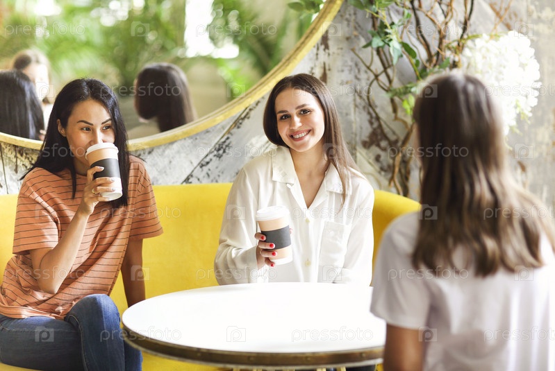 Разнообразные друзья отдыхают в кафе