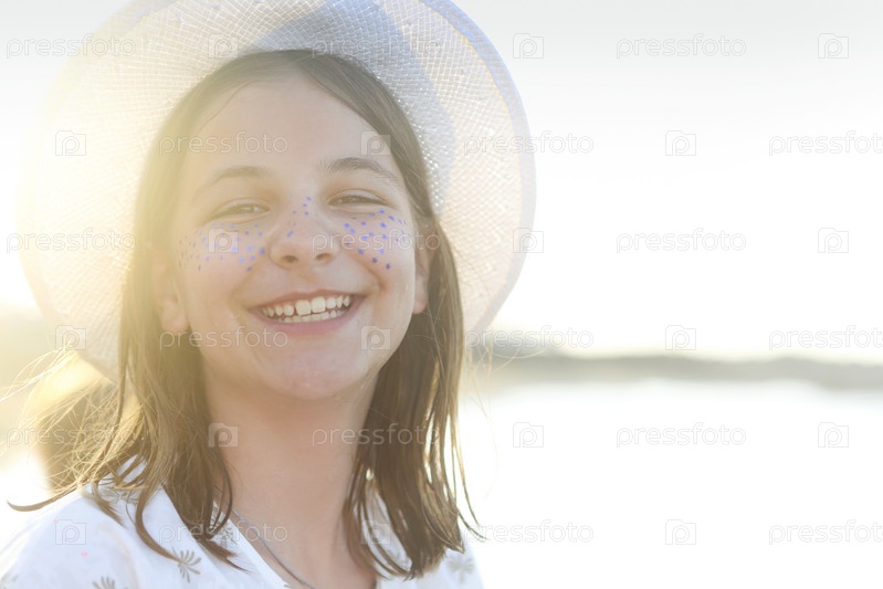 Веселая девочка-подросток на пляже