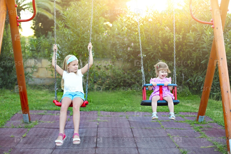 Две младшие сестры на качелях