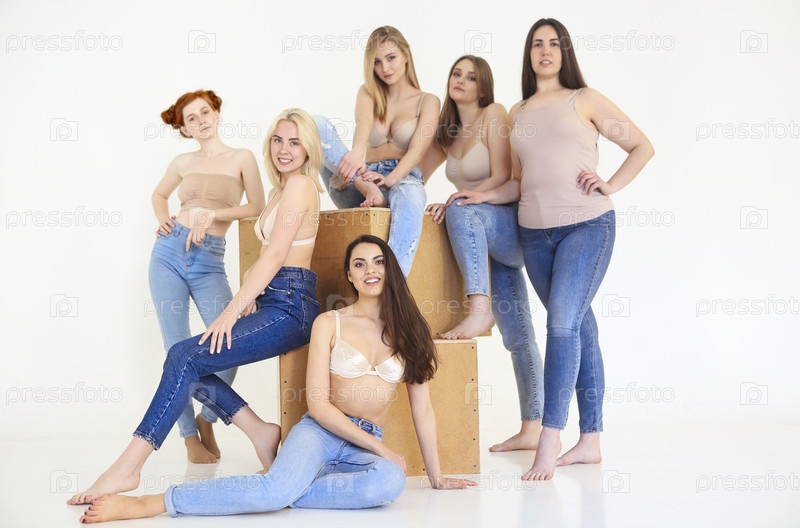 Красивый мультикультурный представлять молодой женщины Камера изолирована над белизной. Бодипозитив