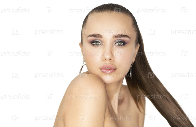Портрет красоты. Красивая брюнетка в укороченном топе с идеальной свежей кожей