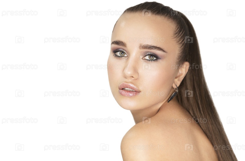 Портрет красоты. Красивая брюнетка в укороченном топе с идеальной свежей кожей