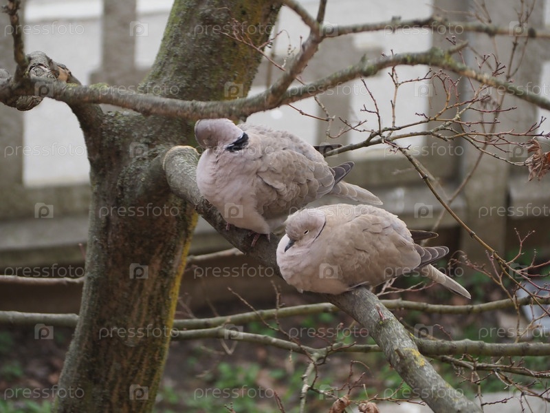 Два евразийских голубя с ошейником (научное название Streptopelia decaocto)