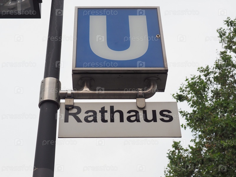 Знак U-bahn Rathaus (имеется в виду станция метро Town Hall) в Кельне, Германия