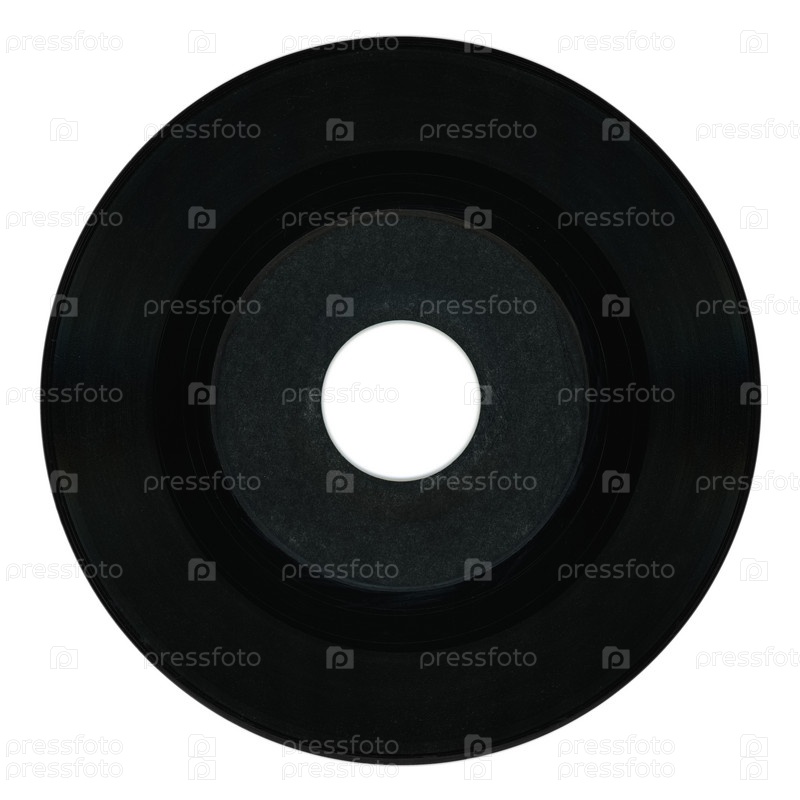 Черная виниловая пластинка винтажный аналоговый носитель записи музыки с пустой этикеткой на белом фоне