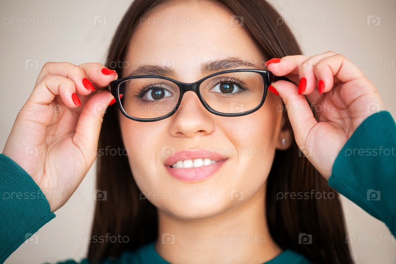 Очаровательная женщина в очках смотрит в камеру