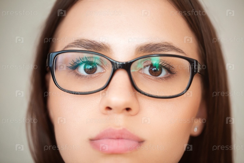 Очаровательная женщина в очках смотрит в камеру