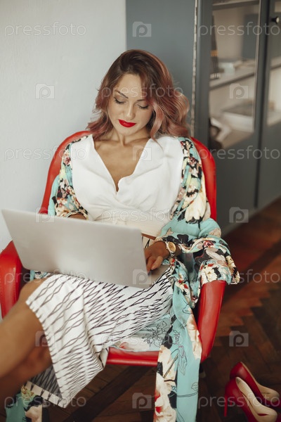Элегантная женщина с ноутбуком дома