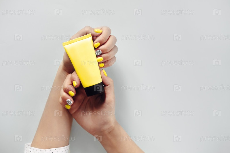 Женщина-урожай со светящимся желтым маникюром со сливками