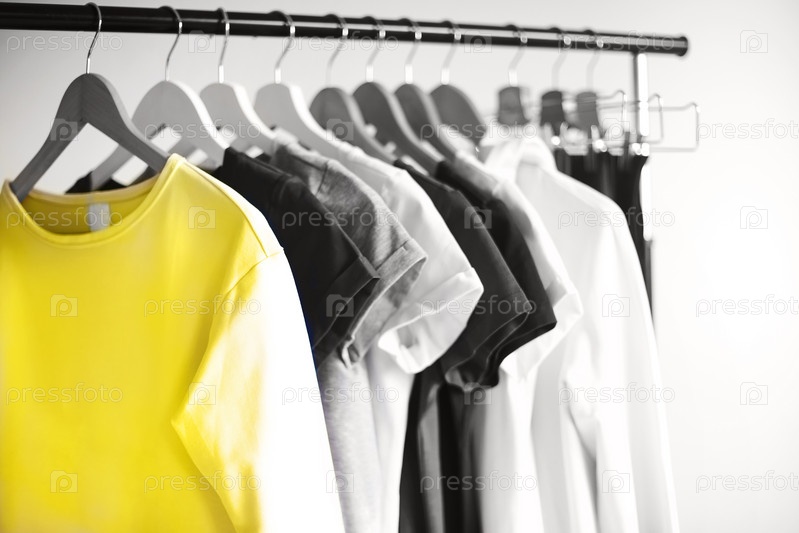 Красочная одежда висит на вешалке в комнате