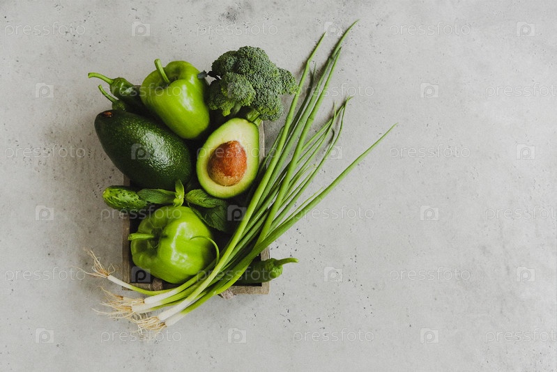 Спелые зеленые овощи в коробке