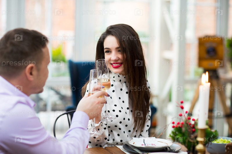 Веселая пара во время праздничного рождественского ужина