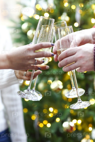 Неузнаваемые люди пьют тосты с бокалами шампанского