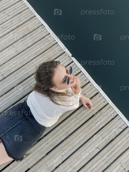 Анонимная женщина играет с водой на пирсе