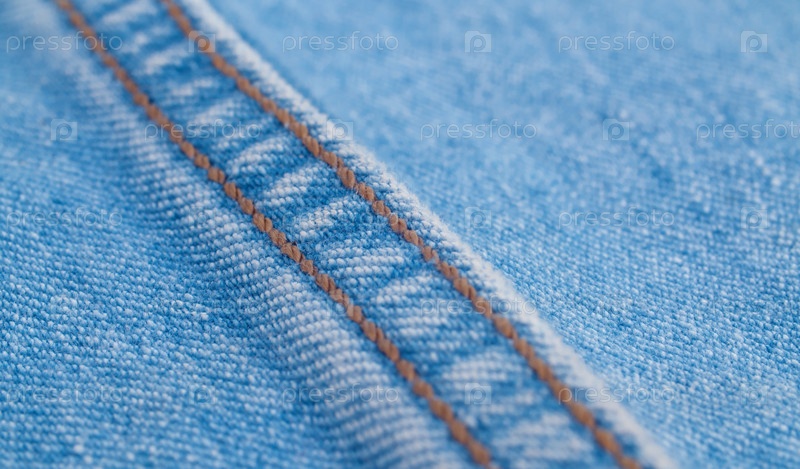 Крупный план - двойной шов на джинсах. Текстура, текстильный фон. макросъемка