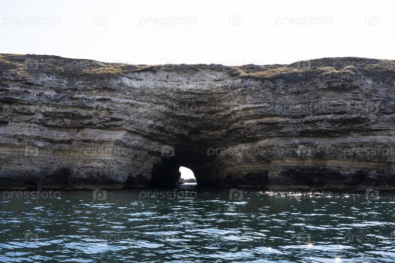 Грот в скале Тарханкутского национального природного парка, Республика Крым, Россия. Ясный солнечный день 26 сентября 2020 г