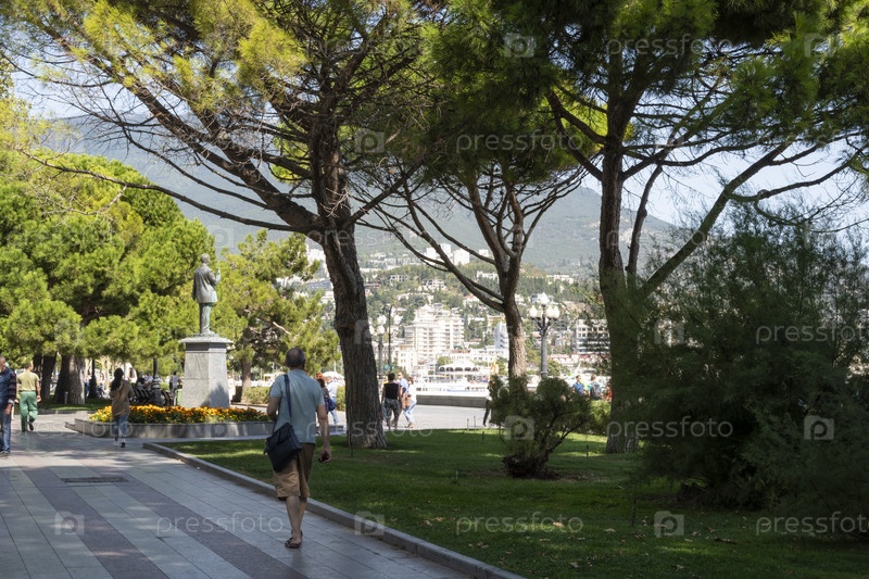 Памятник Краснову на центральной набережной города Ялты в Республике Крым, Россия. Ясный солнечный день 21 сентября 2020 г