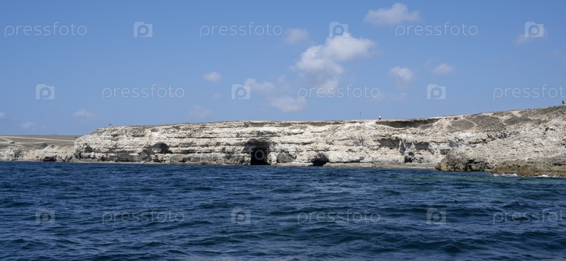 Грот в скале Тарханкутского национального природного парка, Республика Крым, Россия. Ясный солнечный день 26 сентября 2020 г