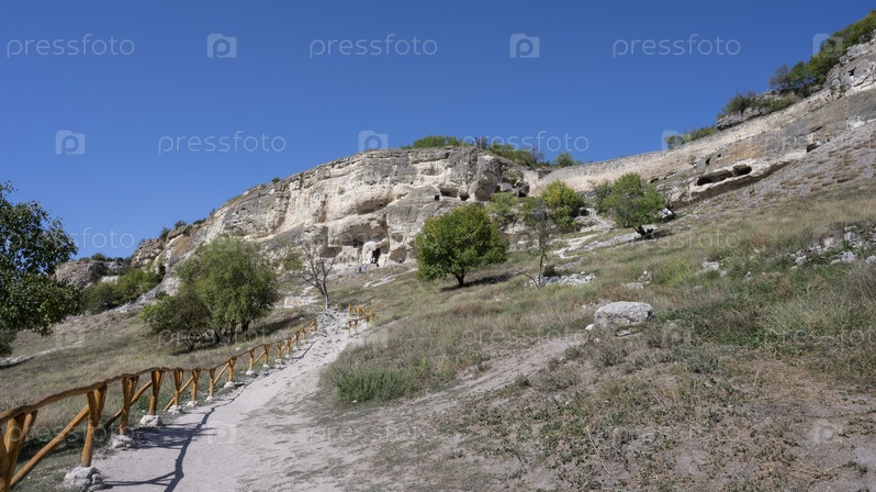 Пещерный город Чуфут-Кале в Республике Крым, Россия. Ясный солнечный день 28 сентября 2020 г