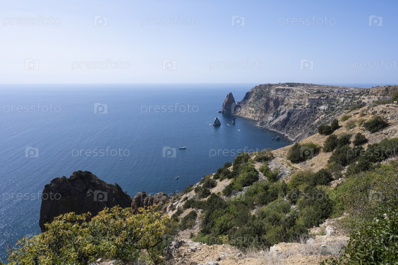 Вид на мыс Фиолент в Севастополе, Республика Крым, Россия. Ясный солнечный день 22 сентября 2020 г