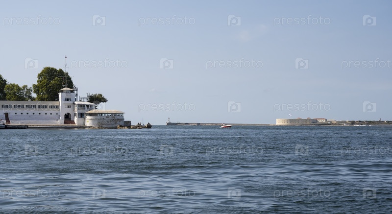 Музейно-выставочный комплекс Константиновской батареи на берегу моря в Севастополе, Республика Крым, Россия. Ясный солнечный день 24 сентября 2020 г
