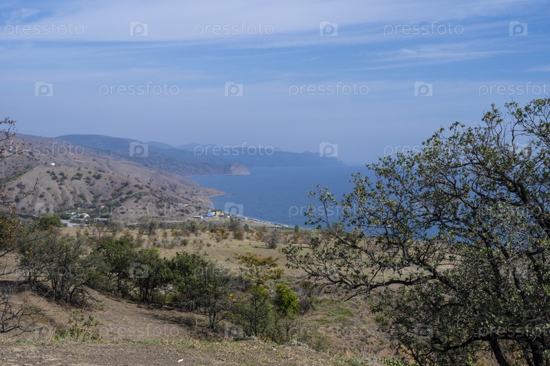 Красивый пейзаж возле поселка Приветное в Республике Крым. Россия. Ясный солнечный день 3 октября 2020 г